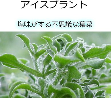 - シャキシャキ 天然の塩分の旨味。塩味がする不思議な野菜です。