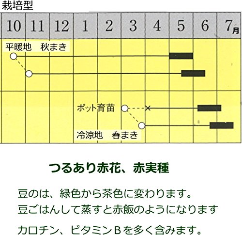 - つるあリ赤花・赤実種、豆は緑色から茶色に変わり、グリーンピース用に、また豆ご飯にして蒸すと赤飯になります。