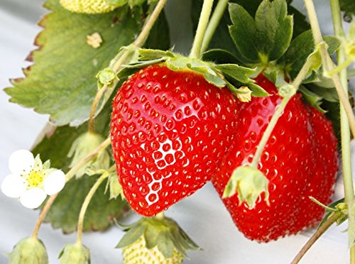 収穫時期:5~6月 果重:12~20g 日照:日向向き 日当たり、水はけのよい場所を好みます。元肥は鶏糞や堆肥を施します。従来のイチゴより元肥をやや多く施して収穫初期までに株を大きく育てます。植え付けは中心の芽が土に埋まらない高さに植えます。浅植え、深植えは禁物です。新しい葉4~5枚を残して株元の枯れ葉などはすべて摘み取ります。冬は防寒の必要はありませんが、春になって芽が伸び始めたら、根元に敷き藁や黒いポリオチレンのシートを敷き、地温を上げるとともに、果実に泥はねなどの汚れがつくのを防ぎます。低温期は水管理に特に注意して、やや控えめに水遣りします。 2月までは月に1回、化成肥料などを追肥してください。収穫期間が長いので、収穫中も肥料切れのないように注意してください。草勢が弱ると乱形果が生じるので、追肥は液肥でやや多めに施します。