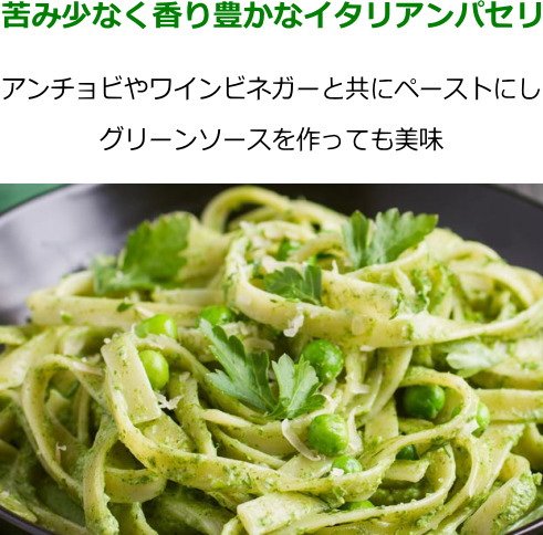 - イタリア料理のパスタやドレッシング、ソースなどに欠かせないフラットリーフのパセリーです。