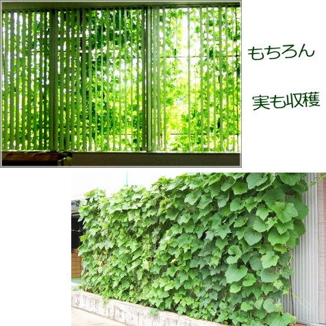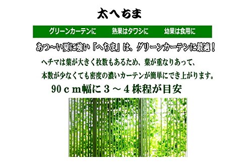 - あつ〜い夏に強い「へちま」は、グリーンカーテンに最適!(90cm幅に3〜4株程が目安)