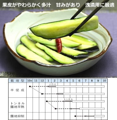 果皮がやわらかく、多汁質で甘みがあり、浅漬用に最適な品種です。