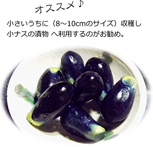- 果実の大きさは13cm位ですが、もっと小さく8~10cmのサイズで収穫しても良し!小ナスは特に漬物 へ利用するのがお勧め。へたを取って丸ごと料理に♪