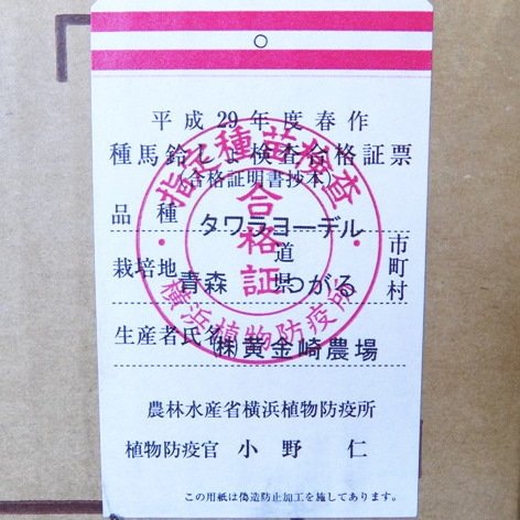 収量性の高い「アンデスレッド」の1.8培近く収穫できます。 さらに嬉しいことに、メークィーン並みの長休眠で賞味期間が長く、発芽の揃いが抜群です。