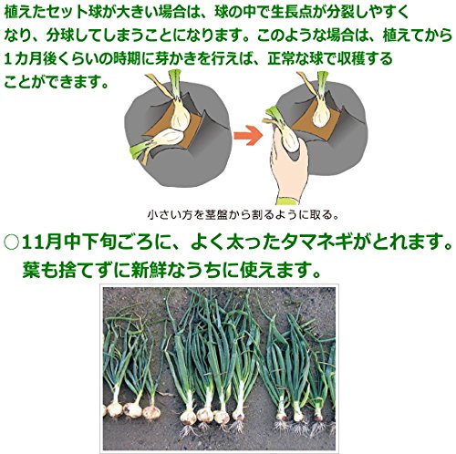 冬に手に入る玉葱は吊り玉の貯蔵タイプしかありませんが、この「セット球栽培」ではフレッシュな新玉を収穫でき、スーパーでは買うことの出来ない、栽培した者だけが堪能できる美味しさです。 8月下旬に植え付けを行えば11月~1月においしいフレッシュたまねぎを収穫できます。やわらかく甘みのある茎葉も青ネギ同様の用途で使えて美味しく、便利。是非チャレンジしてみて下さい。