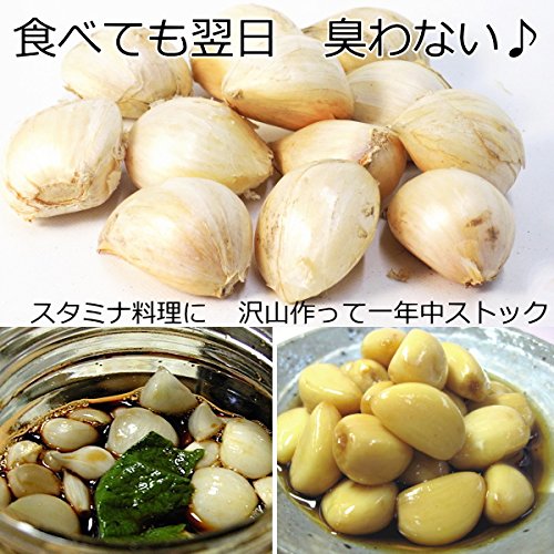 - におい少なく食べやすい無臭にんにく。従来のニンニクに比べ大型でにおいが少ない。