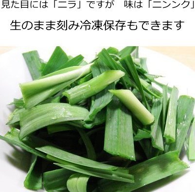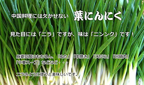 - 見た目には「ニラ」ですが、味は「ニンンク」です!麻婆豆腐はもちろん、「ぬた」「串焼き」「天ぷら」「回鍋肉」「中華スープ」などなど・・・ニラのように使うと美味しいです。