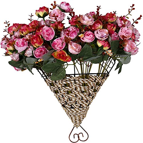ノーブランド品 造花 壁掛け 壁飾り ハンギングバスケット 蕾 花 バド 観葉植物 人工観葉植物 雑貨 アーチ 飾りつけ 飾り 装飾 インテリア フラワー カゴ入り ピンク Generic Artificial Silk Fake Flower Hanging Basket Autumn Tea Bud Suit for Home Garden (ピンク)