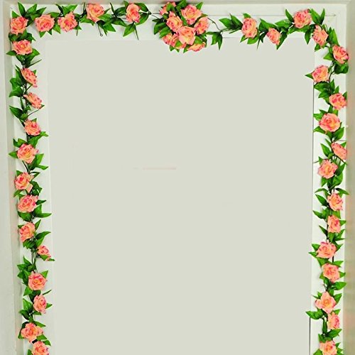 ノーブランド品 造花 壁掛け 壁飾り 蔓 花 葉 バド バラ アイビー 籐 観葉植物 人工観葉植物 インテリア ローズ 雑貨 アーチ 装飾 飾りつけ フラワー 結婚式 イベント 活動 オレンジ Generic 2pcs Artificial Fake Silk Rose Flower Rattan Vine Ivy For Home Party Wedding Decoration(オレンジ)