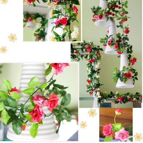 ノーブランド品 造花 二本 長さ : 259cm (8.5ft)飾り 蔓 葉 バラ アイビー 籐 観葉植物 人工観葉植物 インテリア ローズ 雑貨 アーチ 装飾 飾りつけ ローズ色 Generic 2pcs Length 8.5ft Artificial Fake Silk Rose Flower Plant Rattan Vine Ivy For Room Home Arches Decoration (ローズ)