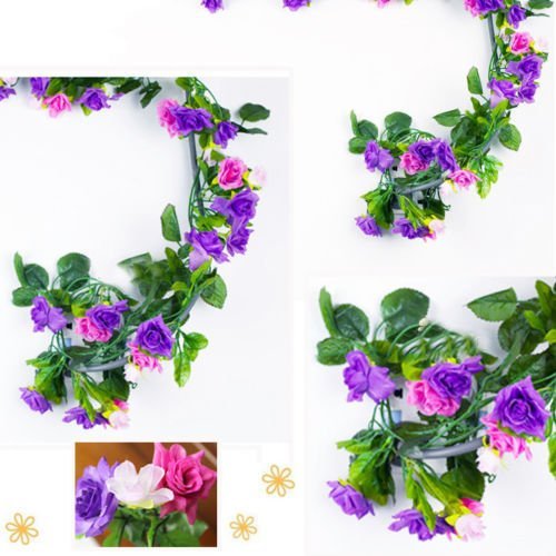 ノーブランド品 造花 二本 長さ : 259cm (8.5ft)飾り 蔓 葉 バラ アイビー 籐 観葉植物 人工観葉植物 インテリア ローズ 雑貨 アーチ 装飾 飾りつけ 紫色 Generic 2pcs Length 8.5ft Artificial Fake Silk Rose Flower Plant Rattan Vine Ivy For Room Home Arches Decoration (紫)