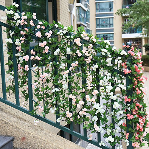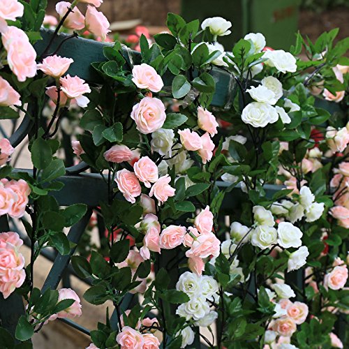 ノーブランド品 造花 壁掛け 壁飾り 蔓 花 葉 バド バラ アイビー 籐 観葉植物 人工観葉植物 インテリア ローズ 雑貨 アーチ 装飾 飾りつけ フラワー 桜色 Generic Artificial Fake Silk Rose Flower Plant Rattan Vine For Wedding Arches Decor Pipe (桜色)