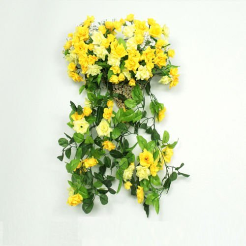 ノーブランド 造花 壁掛け 壁飾り ハンギングバスケット 蕾 花 バド 観葉植物 人工観葉植物 雑貨 アーチ 飾りつけ 飾り 装飾 インテリア フラワー カゴ入り イエロー Generic Hanging Wall Artificial Fake Silk Rose Flower Rattan Plant Arches Decor W/Basket (黄色)