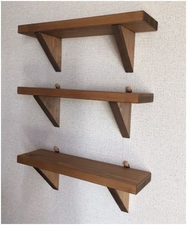 - シンプルな壁掛けシェルフの3点セットです。どんなお部屋にも合わせやすく馴染みやすいデザインです。 お気に入りの雑貨や、思い出の写真を素敵に飾ってみてはいかがでしょうか?