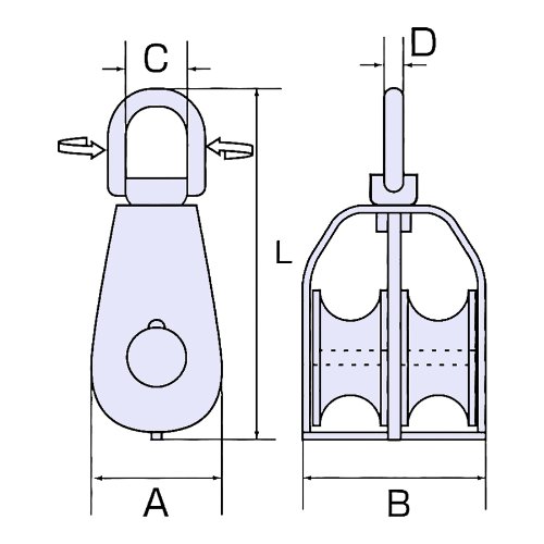 - A=36mm B=45mm C=15mm D=6mm L=92mm 使用ロープ径=Φ12mm