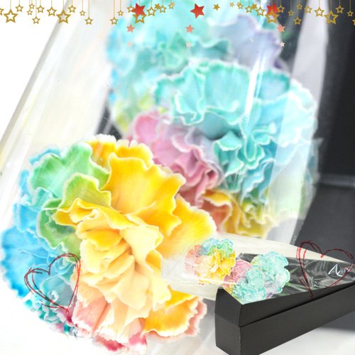- カーネーション(レインボー)3本・長さは約50センチ・専用ギフト箱入り