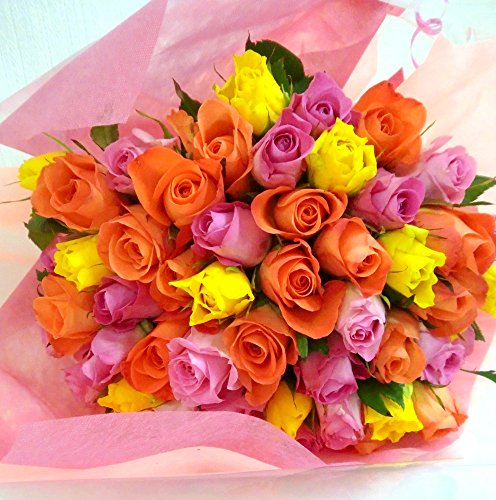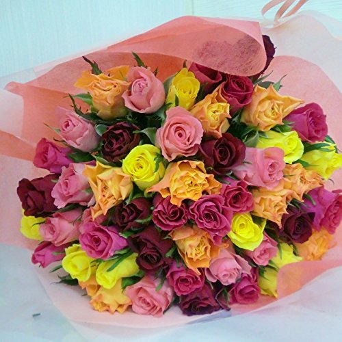 ほんまもん屋 ギフト ミックスカラー ブーケ バラ50本の花束 カラフル
