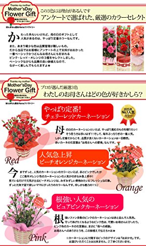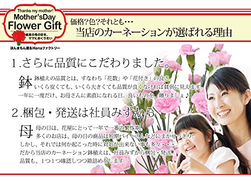 長く楽しむことができる鉢植えのカーネーション。母の日特製ピックをお付けしてお届けします。