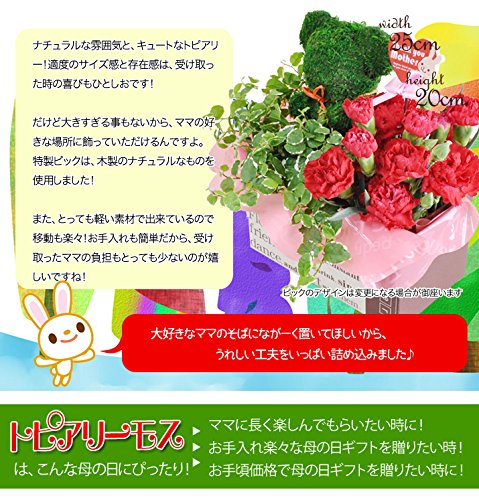 長く楽しむことができる鉢植えのカーネーションをはじめとしたアニマルトピアリーのセット。母の日特製ピックをお付けしてお届けします。(ピックのデザインは写真とデザインが変わる場合があります)