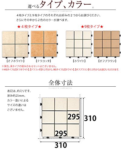 ジョイントタイル 陶器製 ベランダ 庭 タイル 屋外用 バルコニー マット 〔10枚セット・幅31cm〕 Bオフホワイト