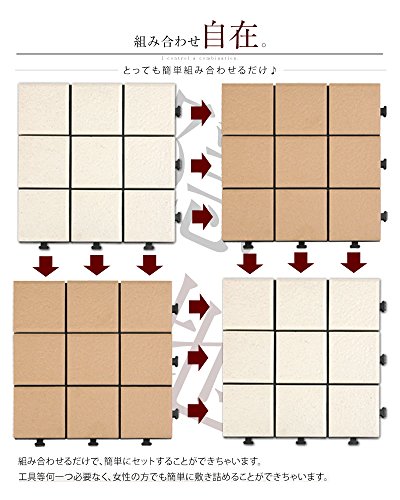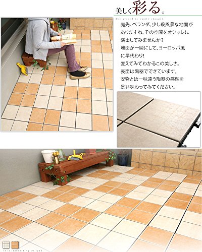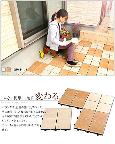 - ベランダや、お庭の開いたスペース、その地面、美しく模様替えしてみませんか?今回ご紹介させていただくのは、ジョイントタイルです。庭先、ベランダ、少し殺風景な地面がありますね。その空間をオシャレに演出してみませんか?地面が一瞬にして、ヨーロッパ風に早代わり!変えてみてわかるこの美しさ。表面は陶器でできています。安物とは一味違う陶器の感触を是非味わってみてください。