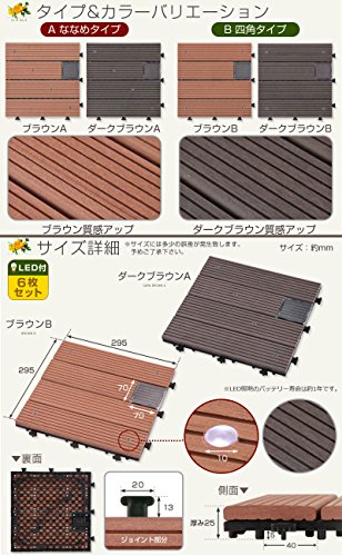 光る ジョイントタイル 樹脂製 屋外用 ベランダ 庭 DIY ガーデニング リフォーム 〔6枚セット〕 ブラウンA