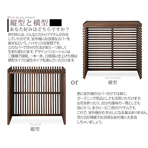 - 世の中には、こんなこだわりアイテムが存在していたのです。室外機にお洒落なカバーを被せるという、ハイセンスな発想です。このカバーで日々の生活がまた一つ新しく生まれ変わります。デザインバリエーションは二種類で展開。一本一本、几帳面に仕上げた柵は横型タイプと縦型タイプを選んでいただけます。