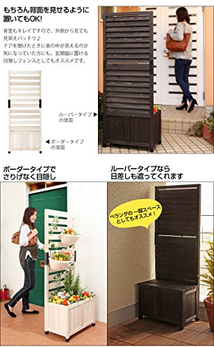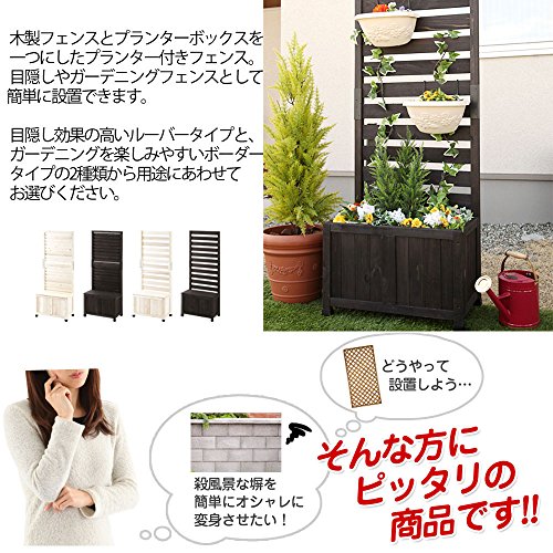 - 簡単にフェンスが設置できるプランター付きフェンスです。しっかり目隠しできるルーバーと、ハンギングなども楽しめるボーダーの2タイプをご用意いたしました。プランターボックスには市販のプランターを入れてガーデニングを楽しんだり、付属の蓋を取り付けてベンチとして使ったりすることができます。蓋の裏側には防水パネルが付いているため、プランターボックスをガーデニング用品やお子様のおもちゃ収納としても◎2台並べた間に蓋を渡して、ベンチとすることもできます。