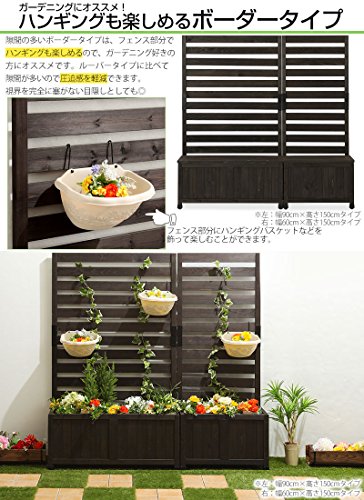 プランター付 ガーデンフェンス 目隠し 木製 プランターボックス付 ブラウン 〔60×150cm〕 ルーバーDBR