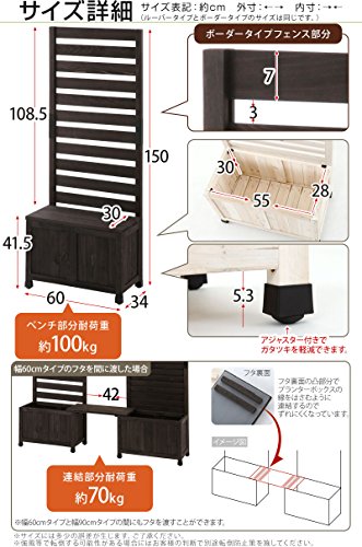 - 【材質】天然木杉材 【塗装】本体:水性ステイン塗装、ベンチ:ラッカー塗装 【耐荷重】ベンチ部:約100kg、連結部:約70kg 【カラー】ボーダーDBR、ボーダーWH、ルーバーDBR、ルーバーWH