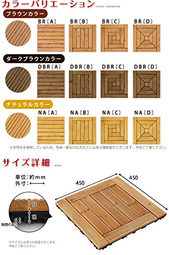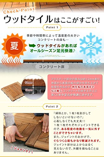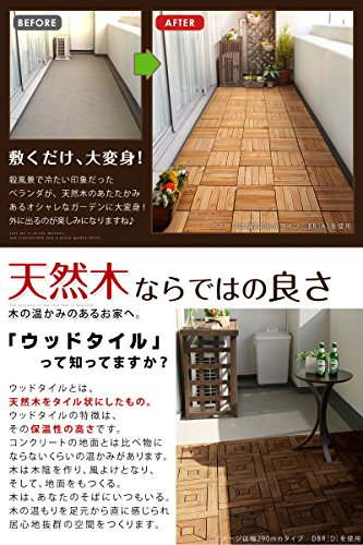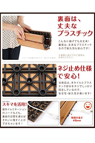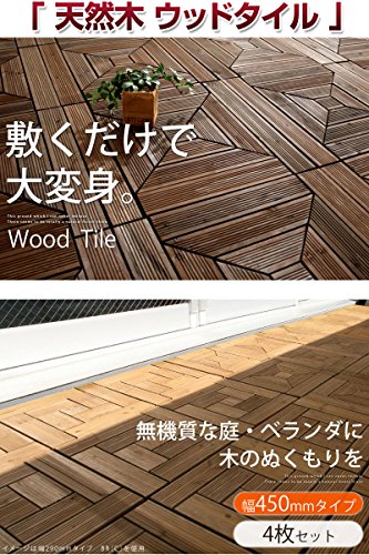 あなたはウッドタイルという商品をご存知ですか? 名前の通り、天然木をタイル状にしたものです。 ウッドタイルの特徴は、その保温性の高さです。 コンクリートの地面とは比べ物にならないくらいの温かみがあります。木は木陰を作り、風よけとなり、そして、地面をもつくる。 木は、あなたのそばにいつもいる。木の温もりを足元から直に感じられ居心地抜群の空間をつくります。 天然木を使用しているため、多少のささくれがございます。素足でのご利用はご遠慮くださいませ。 2010年5月より仕様変更のため、5月以前にご注文頂いた分とサイズが異なっております。 追加でご注文の際は一度お問い合わせを下さいませ。 ※この商品はリサイクル資材を使用しての梱包・発送となります。ご了承くださいませ。