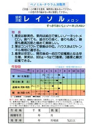 レイソルは、鮮やかな黄金色の皮の白肉メロンの種です。 純白の果肉は食味抜群で甘くておいしいメロン品種です。 特に味に対しての評価が高くこの系統(黄色皮のメロン)としては一番美味しいのではないかと思います。 着果が良く作りやすい品種で棚持ちも良いと人気があります。。 みかど協和のレイソルメロンは、非常に作り手である農家のリピーターが多いメロンです。 みかど協和の傑作品種ではないでしょうか。 消費者にもとても好調の黄色皮のメロンのため、農家のリピーターが多いようです。 産地の農家にも野菜直売店に出す人にも、また、比較的に作り易いので家庭菜園にもおすすめ品種です。 大きさは800グラム~1キログラム位です。 開花後40日~45日位で収穫できる早生種です。 メロンの皮はとても鮮やかで濃い黄色になります。(野菜直売店の差別化商品向きです。)
