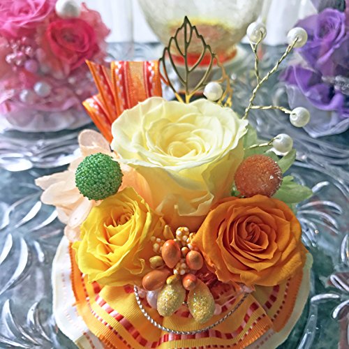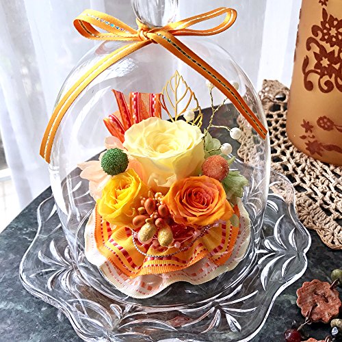 NEW ダイアナ バラ3輪 プリザーブドフラワー ガラスドームダイヤ イエローオレンジ