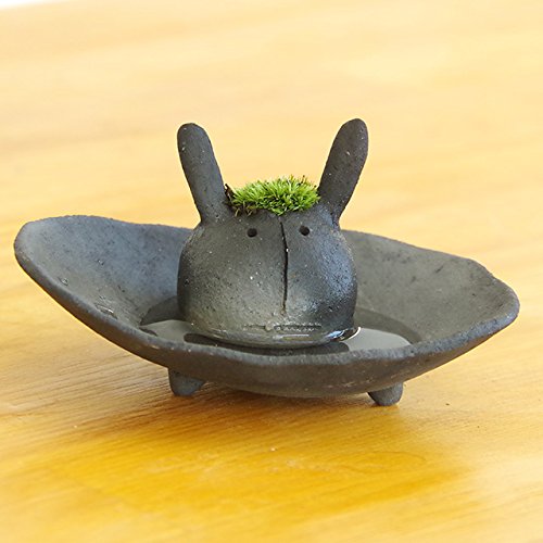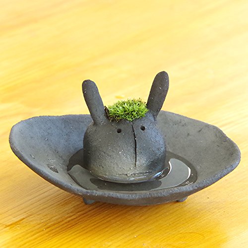 - 【セット内容】モスウサギ/黒…1つ、受け皿(焼締)/黒…1枚、育て方のしおり