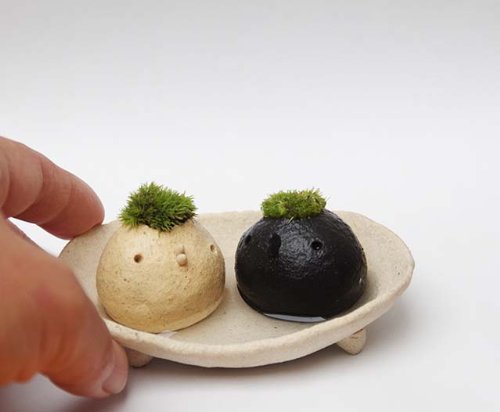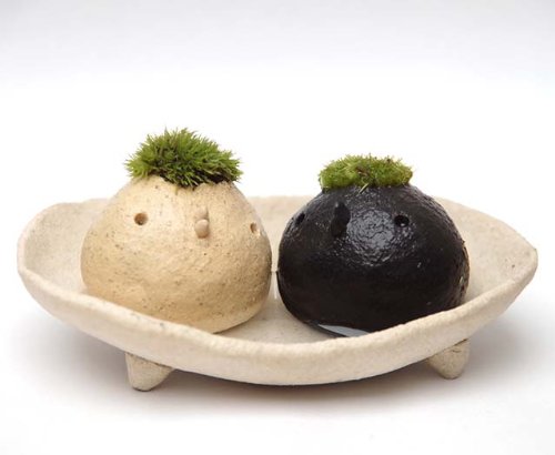 - 【セット内容】モスコトリ/白・黒…各1つ、受け皿(焼締)/白・ベージュ系…1枚、育て方のしおり