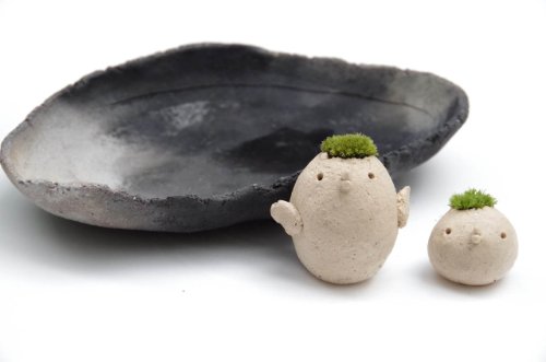 - 【セット内容】モスドリ/白…1つ、モスコトリ/白…1つ、受け皿(炭化焼締)…1枚、育て方のしおり