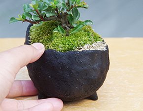 花も葉も楽しめ、名前も「長寿梅(ちょうじゅばい」と、縁起物の贈り物としても人気があります。結婚式などご両親へのプレゼント、還暦祝いなど、気持ちのこもった贈り物として人気です!そんな紅長寿梅を作家真山茜さんの炭化焼締鉢であわせてみました。約1年分の肥料がついております。(詳しい管理の方法は、育て方のしおりを付けておりますのでご参照ください。 ※植物は季節によって、冬枯れや開花前など写真とイメージが異なる場合がございます。あらかじめご了承ください。