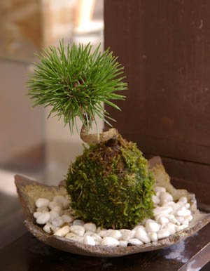 - 内容:黒松(クロマツ)の苔玉・・・1つ、・焼締茶器・・・1枚、・敷石・・・1袋、育て方のしおり