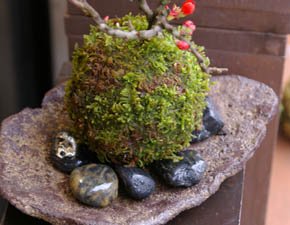 - 作品サイズ(約):幅20cm×高さ28cm×奥行き13.5cm(苔玉の玉は10cm×10cm)、くらま岩器:幅20cm×高さ4cm×奥行き12cm