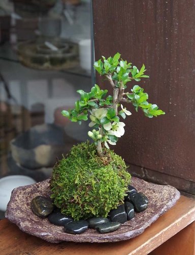 - 内容:・白長寿梅(シロチョウジュバイ)の苔玉・・・1つ、・くらま岩器・・・1枚、・敷石・・・1袋、育て方のしおり