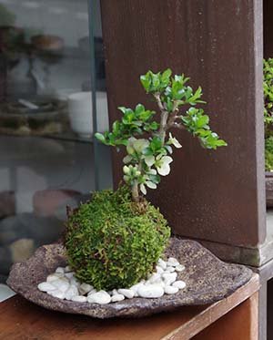 - 水遣りは苔玉を持って軽くなったら水につけてください。目安は夏は1日から2日に1回・それ以外は2日から3日に1回。