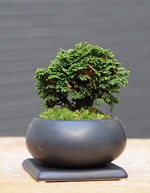 壮大な景色をお楽しみください【連山檜(れんざんひのき)の盆栽・下皿セット】