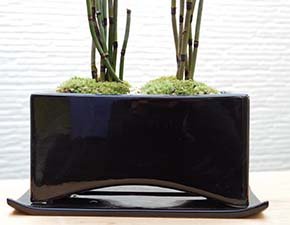 気品高い 和の雰囲気を貴方の元に【木賊(トクサ)の盆栽(黒陶器鉢)・下皿セット】