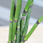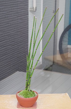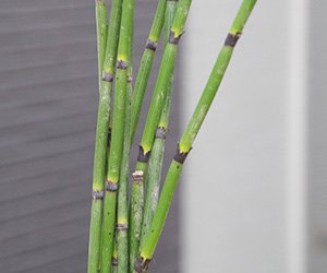 トクサは成長期に上へ上へと伸びて行きます。その姿はとても凛々しく見えます。その姿はとても凛々しく見えます。硬い茎は昔、木工品を磨く材料に使われていたそうです。育て方のしおり、約1年分の肥料がついています