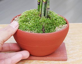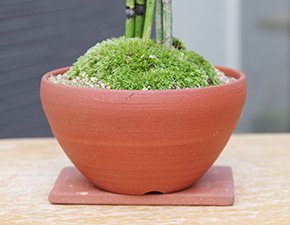 気品高い 和の雰囲気を貴方の元に【木賊(トクサ)の盆栽(朱色焼締鉢)・下皿セット】