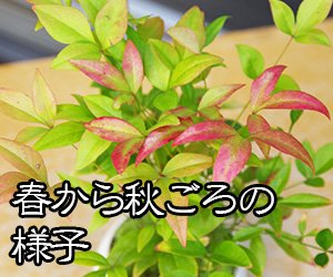 - 南天は日陰でも育つ丈夫な植物です。夏以降は肥料を与えず、秋~冬に寒さに当てると美しい紅葉が楽しめます。