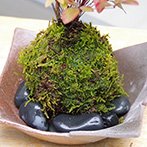 - 作品サイズ(約):作品:幅13cm×高さ21cm×奥行き18cm(苔玉の玉は9×9cm) 器:幅16cm×高さ3.5cm×奥行き16cm