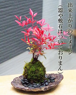 - 直径約10cmくらいの南天の苔玉が作れるキットです。