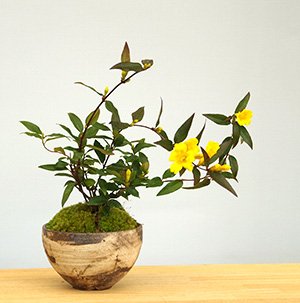 春に眩い黄色の花が楽しめる【カロライナジャスミンの盆栽(焼締鉢)】