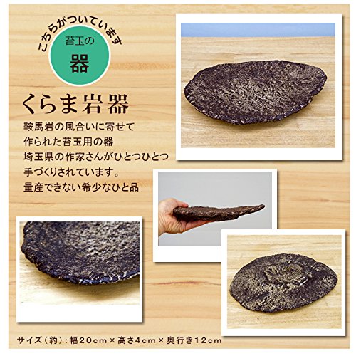 - 作品サイズ(約):幅17cm×高さ28cm×奥行き16cm(苔玉の玉は10cm×10cm)、くらま岩器:幅20cm×高さ4cm×奥行き12cm